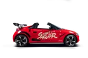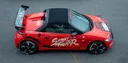 customized by our engineers. including a massive rear wing for seriousdownforce and fitted with a rev tuning kit activated by a hidden buttonbelow the dashboard. custom striped and wrapped in PO–133 theme.street legit in europe, japan and probably in america as well.